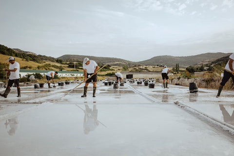 Si nuestras escamas de sal nacen de la calma, estas piedras nacen de la furia. Se forman en los días de calor intenso, cuando el viento norte sopla con fuerza y agita el agua sin piedad. No son delicadas. Son cubos, cristales con aristas, forjados por el sol y el viento. Son la otra cara de la misma salina. El hermano rudo de la familia, con el mismo increíble balance mineral.